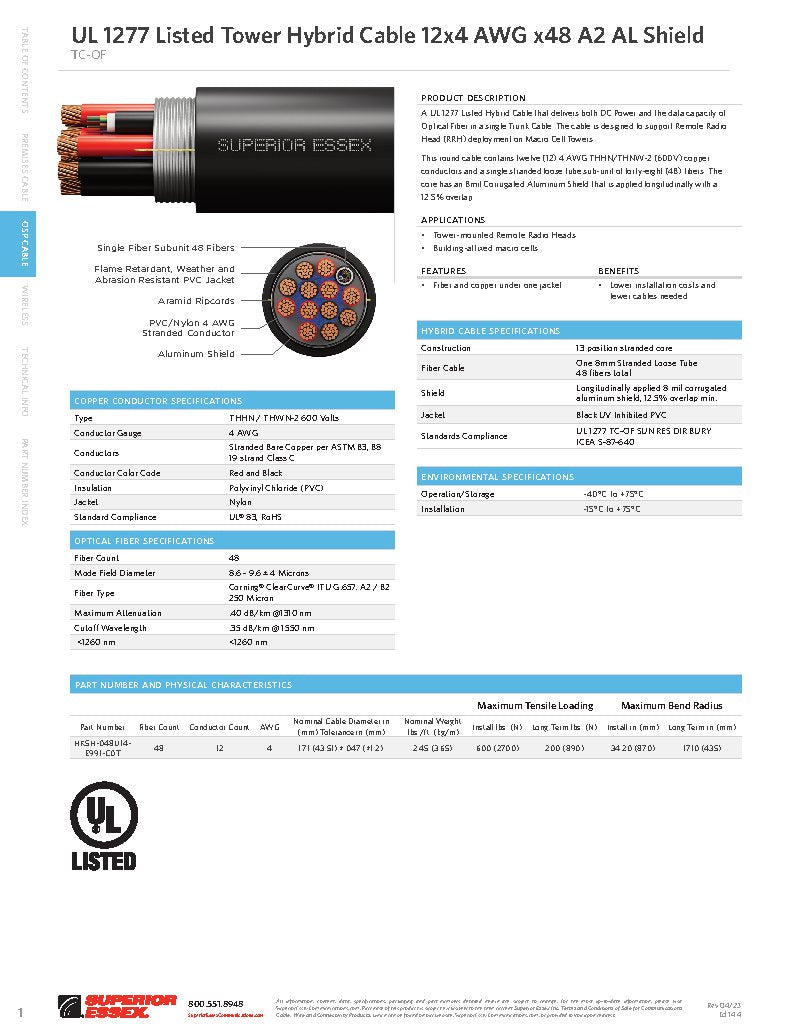 ← BackDatasheet UL Listed - Tower Hybrid - A2 AL Shield - Single Fiber Subunit