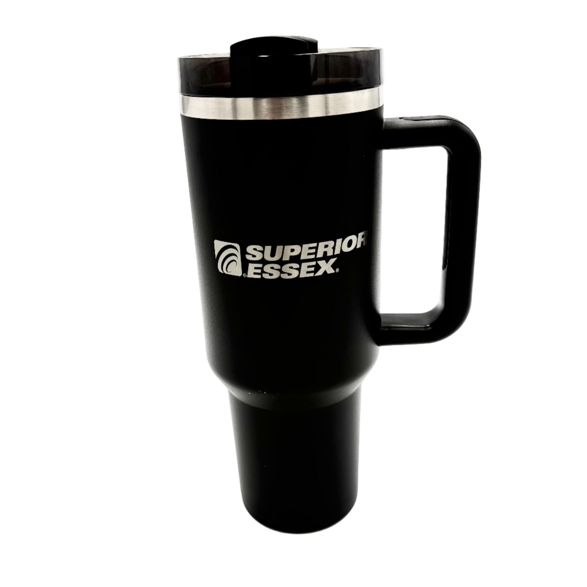 Features include a large handle for keeping this sipping companion at hand, a tapered base for fitting in a cupholder, and more.